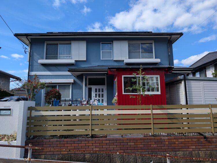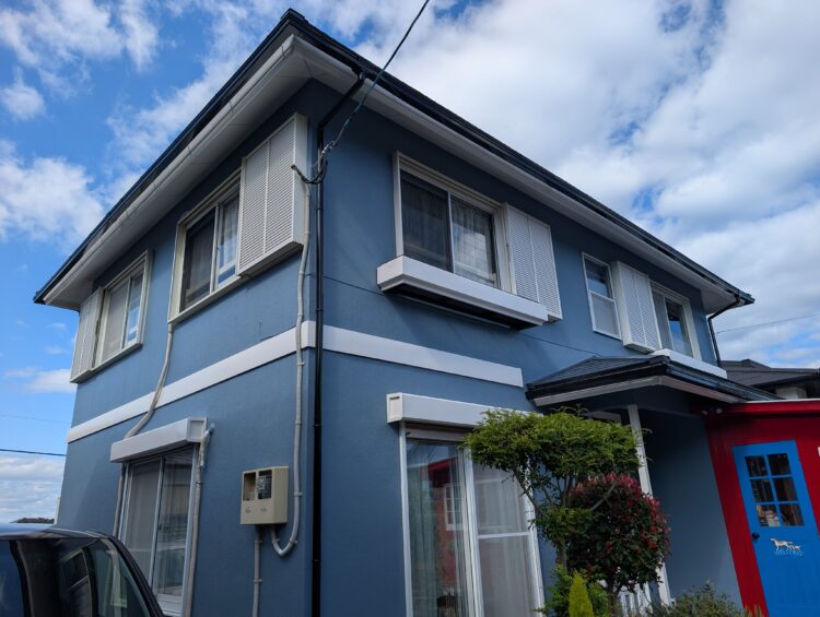 下地処理をしっかり行ない、外壁はブルーグレー×ホワイトの素敵なお家に生まれ変わりました。