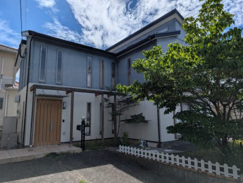 元の色合い(ブルー×ホワイト)が住宅のデザインにとても合っていたので施主様も悩んでおられましたが、今回は思いきって色を変えて塗り替えました。