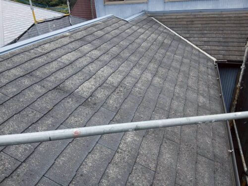 非常に陽当たりの良い立地のため、色あせやチョーキングが目立っていました。