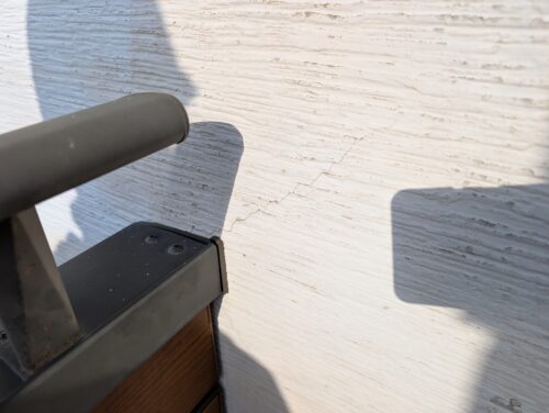 特に西側のベランダ面は西日が強く、紫外線や熱の影響を最も受けやすい箇所でした。