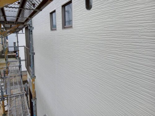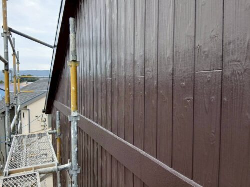当初は塗装工事のみの予定でしたが、西側外壁については下地からの修繕工事を実施し、新たに外装板を張り替えています。